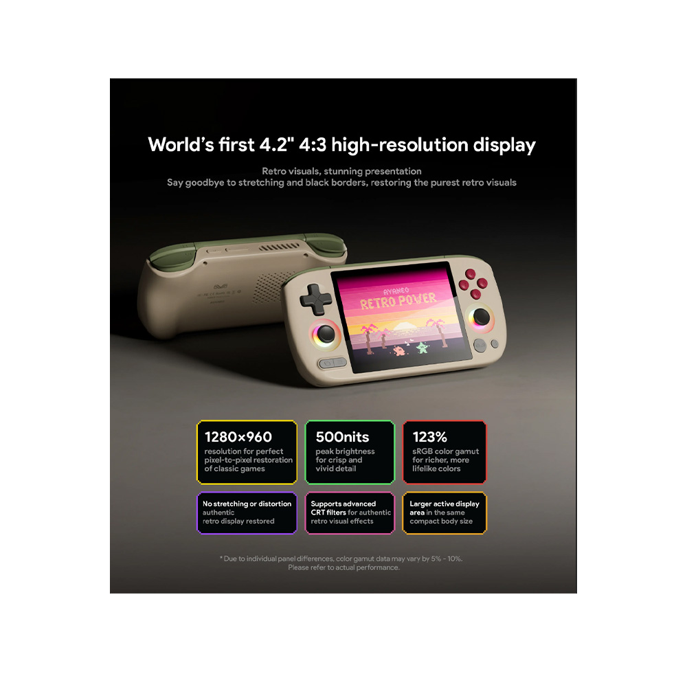 Display 4.2 inch 1280 x 960 60Hz Lcd Procressor 2x Cortex a76 6x Cortex a55 Mail g76 MP4 Cooling Active cooling with fan Memory and storage 3GB + 64GB